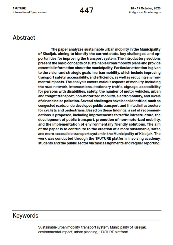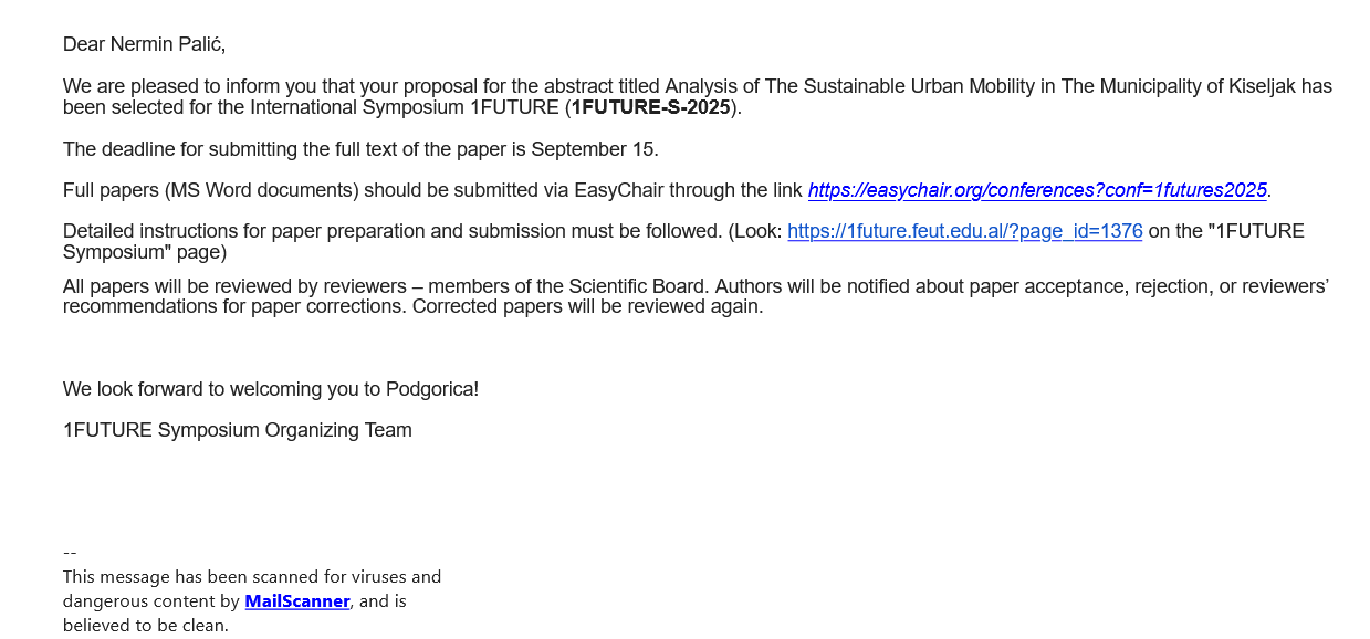 Naš rad, koji smo pripremali tokom semestra u saradnji s Općinom Kiseljak, nakon recenzije stranih stručnjaka prihvaćen je za simpozij s ocjenom strong accept. Ova ocjena znači da je rad prepoznat kao veoma kvalitetan, sa značajnim doprinosom temi i preporukom za objavu bez dodatnih izmjena.
