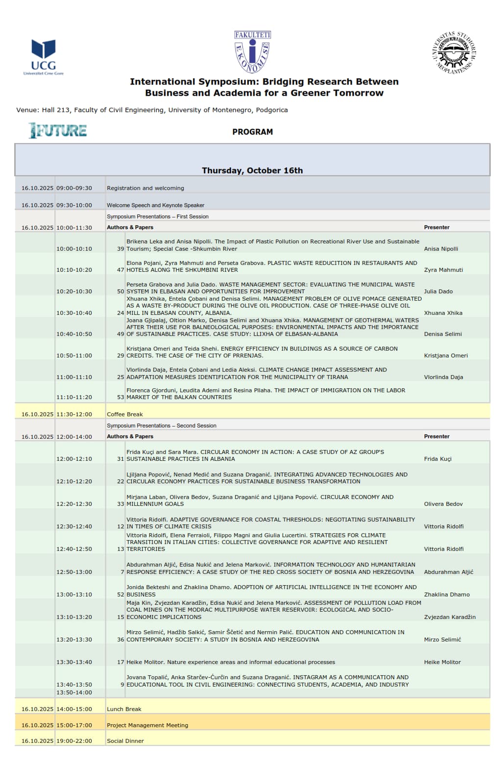 Sažetak za učešće na simpoziju je prihvaćen. Finalna verzija će biti dostavljena najkasnije do 15.9.2025. Više informacija o simpoziju možete pogeldati ovdje: International Symposium "Bridging research between Business and Academia for a Greener Tomorrow" -